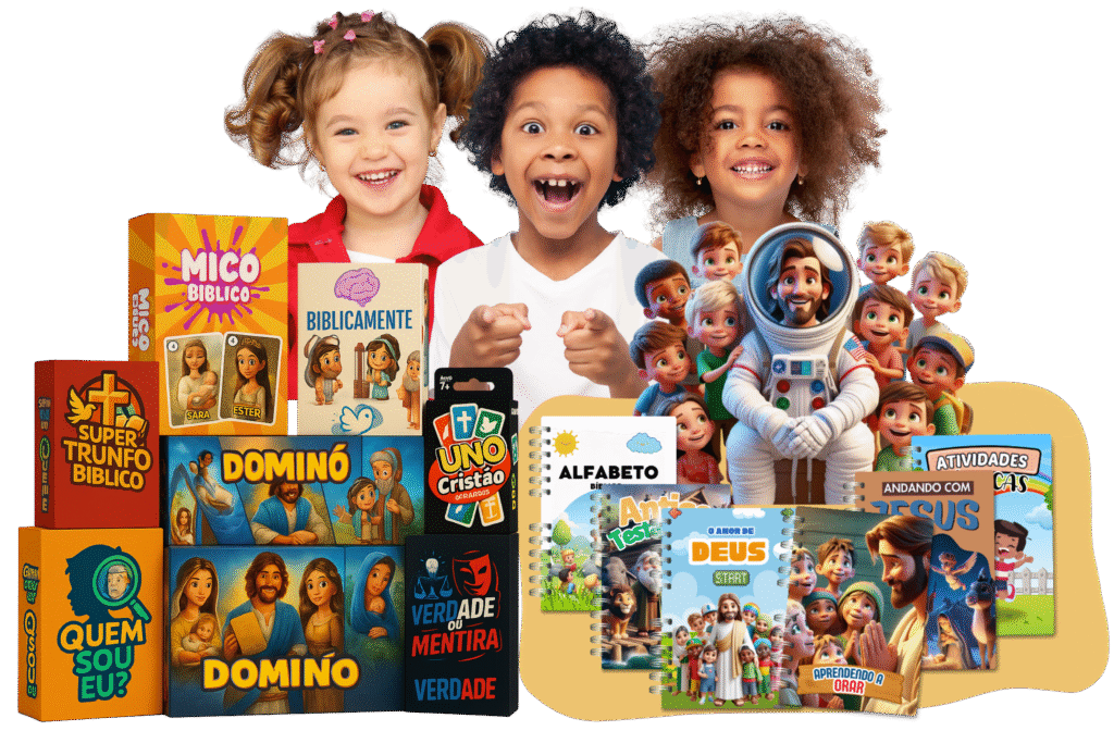 ✅ Atividades ✅ jogos cristãos + ✅ 6 Bônus que ensinam, divertem e fortalecem a fé.